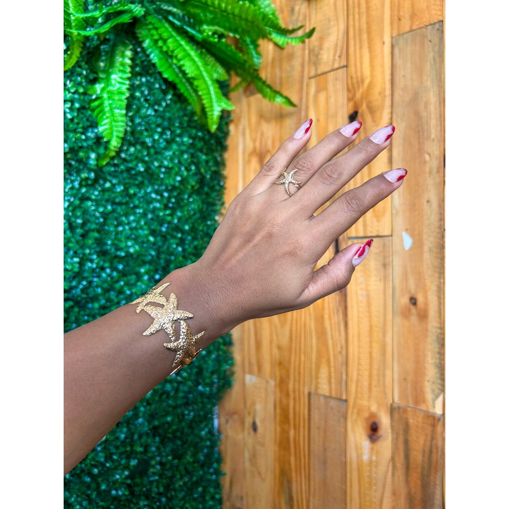 pulseira bracelete metal grosso kit com anel dourado e prata acessórios feminino